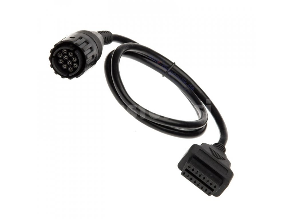 Adapter za priključitev starejših motornih koles BMW. Za priključitev motornega kolesa z okroglo 10-pinsko vtičnico z uporabo diagnostike s priključkom OBD-II.