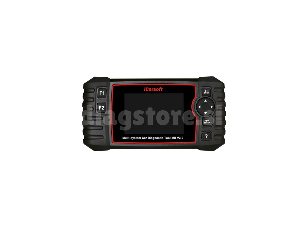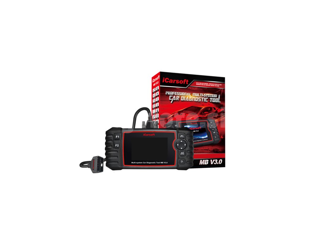 iCarsoft MB V3.0 je diagnostično orodje, ki omogoča povezavo z vseh krmilnih enot vozil Mercedes, Smart in Maybach . Naprava je opremljena s 4" barvnim zaslonom in je pripravljena za uporabo. Posodobitve programske opreme naprave so popolnoma brezplačne in se izvajajo prek računalnika (priložen je kabel USB). Naprava ima širok nabor podprtih jezikov. Podprti so avtomobili od leta 1996 do 2020.Izdelek omogoča podrobno diagnostiko vseh enot, poleg tega pa ponuja veliko število servisnih funkcij, kot so ponastavitev servisnih intervalov, regeneracija DPF, diagnostika in sprostitev električne parkirne zavore, kodiranje injektorjev, registracija akumulatorja in še veliko več. Izdelek je z avtomobilom povezan prek kabla OBD-II.
