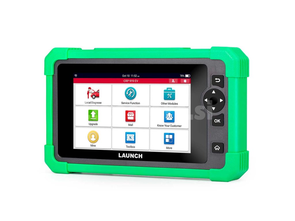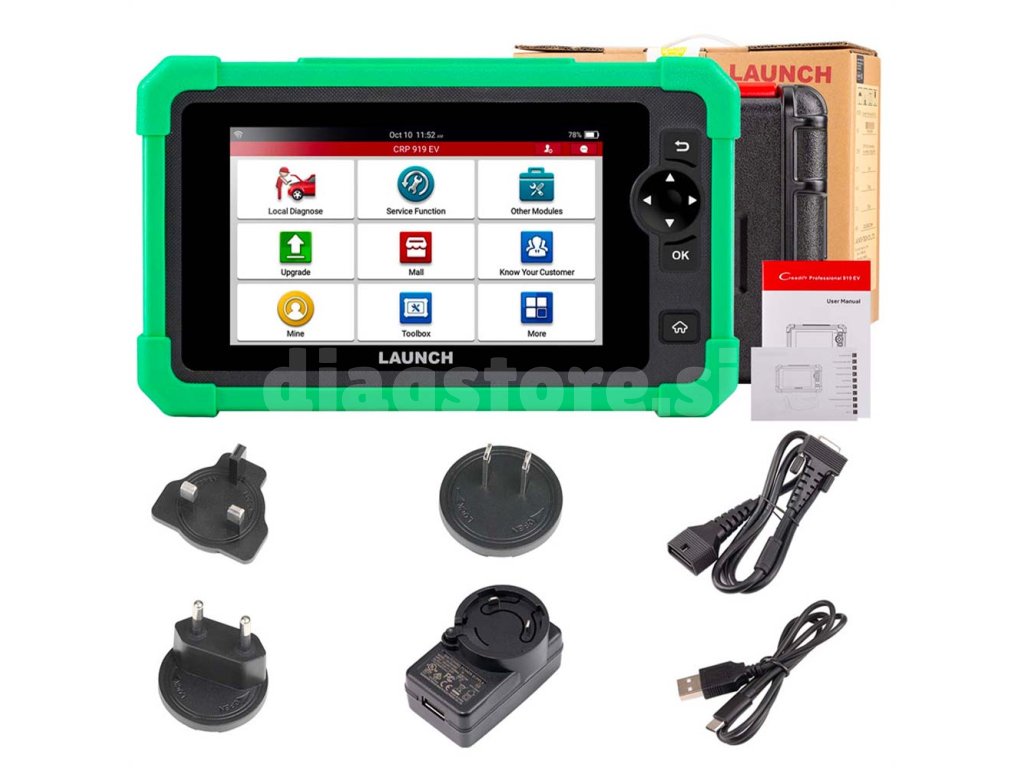 Launch X431 CRP919 EV je poseben instrument za diagnostiko EV. Ponuja diagnostiko vseh enot večine evropskih, azijskih in ameriških vozil v povezavi z naprednimi servisnimi funkcijami. Poveže se z vsemi enotami, prebere kodo pripravljenosti, ponuja pa tudi vrsto servisnih funkcij - ponastavi servisne intervale, analizira stanje akumulatorja, izvede odzračevanje ABS, servis električne parkirne zavore, nastavitev luči in oken, testira 48V MHEV sistem in še veliko več. Instrument podpira teste aktuatorjev, prilagajanja in kodiranja. Nekatere dodatne funkcije so na voljo za doplačilo. Podpora za CAN-FD in DoIP.