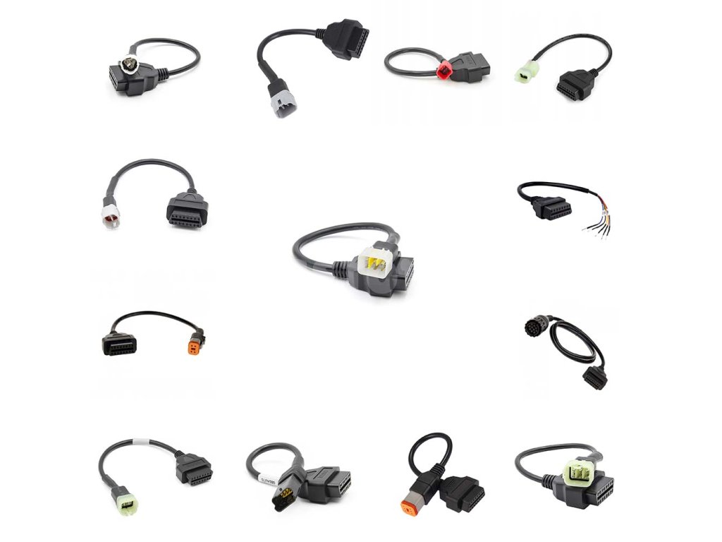 Set adapterjev OBD-II za diagnostiko motornih koles. Primerni za uporabo z diagnostiko Launch in drugih proizvajalcev.