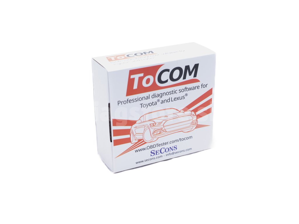 ToCOM je diagnostika za vozila Toyota, Lexus in Scion. Komplet sestavljata inteligentni diagnostični adapter s povezavo USB in program za operacijski sistem Windows. Prednost je ozadje proizvajalca Secons iz EU in neomejene posodobitve, vključene v ceno. Prednost je tehnična podpora proizvajalca - če odkrijete nepodprt krmilnik ali če katera koli funkcija ne deluje po pričakovanjih, se lahko obrnete na nas ali neposredno na proizvajalca.